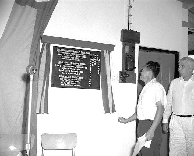 LABOUR AND LAW MINISTER K M BYRNE WITNESSING PRIME MINISTER LEE KUAN YEW OFFICIATING AT THE OPENING OF THE TANAH MERAH HOLIDAY CAMP