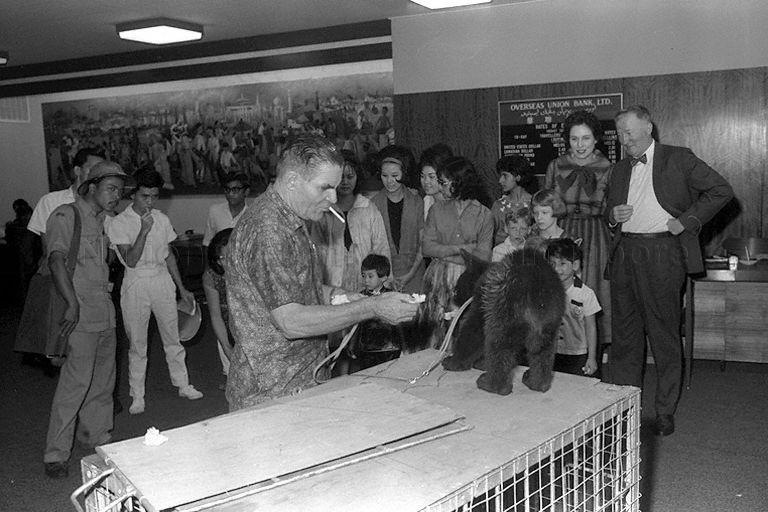 "YOGI BEAR" CUB FROM AMERICA AT TOURIST PROMOTION BOARD IN SINGAPORE. IT WAS PRESENTED TO JOHORE ZOO AT A SPECIAL CEREMONY ON 3 AUGUST.