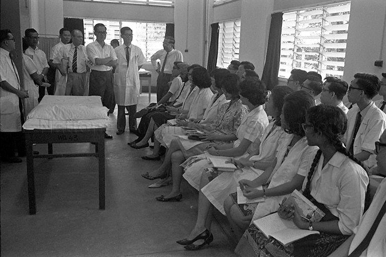 MINISTER FOR HEALTH YONG NYUK LIN WITH MEDICAL STAFF AT A DEMONSTRATION SESSION DURING VISIT TO GENERAL HOSPITAL
