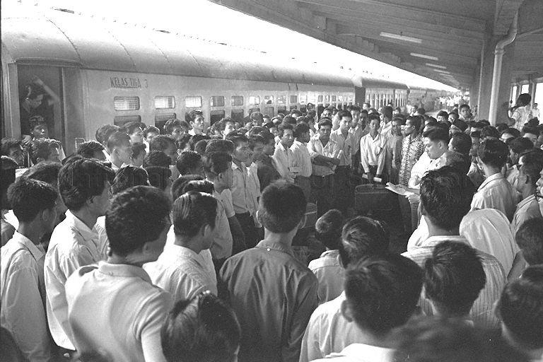 PARLIAMENTARY SECRETARY TO MINISTRY OF SOCIAL AFFAIRS CHAN CHEE SENG AT SEND-OFF FOR 134 NATIONAL SERVICEMEN TO CAMP SIGINTING, PORT DICKSON, AT THE RAILWAY STATION