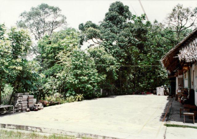 ATTAP ROOF AND WOODEN PLANK FARM HOUSE WITH OVERHEAD ELECTRICITY SUPPLY CABLE AT 118C JALAN LAM SAN