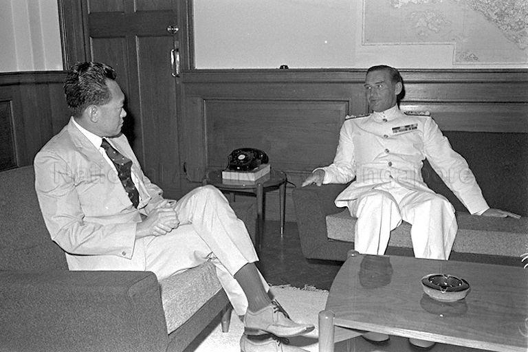 NEW BRITISH COMMANDER-IN-CHIEF ADMIRAL PETER HILL NORTON PAYING A COURTESY CALL ON PRIME MINISTER LEE KUAN YEW