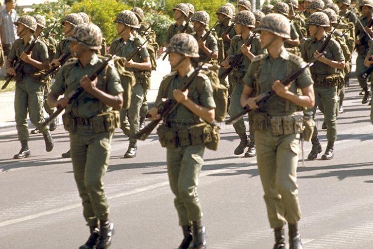 National Day Parade 1970 at the Padang - Singapore Armed Forces (SAF) contingent marching