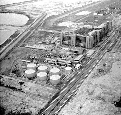 AERIAL VIEW OF THE FUEL FARM AT CHANGI INTERNATIONAL AIRPORT