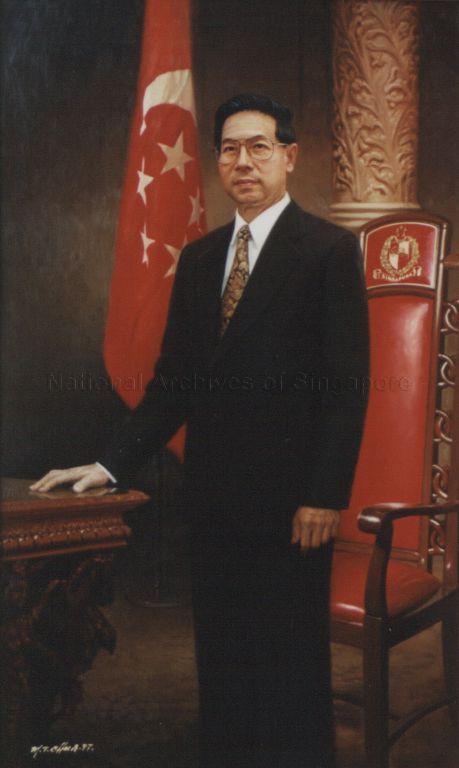 CANVAS OIL PAINTING BY CHUA MIA TEE, 1997. PORTRAIT OF PRESIDENT ONG TENG CHEONG