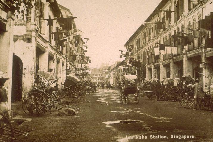 Streets in Chinatown, off South Bridge Road, where most of the jinrickshaw pullers lived in tiny cubicles