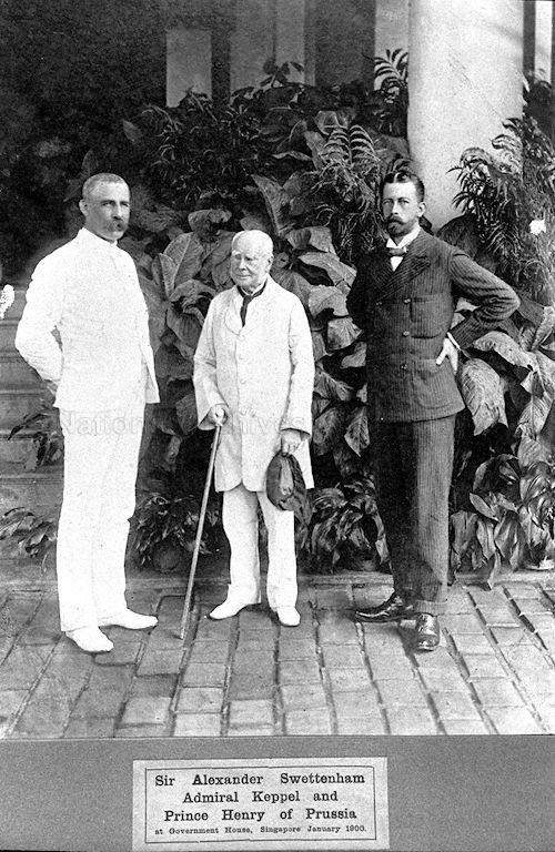 SIR FRANK ALEXANDER SWETTENHAM, ADMIRAL KEPPEL AND PRINCE HENRY OF PRUSSIA AT GOVERNMENT HOUSE, SINGAPORE
