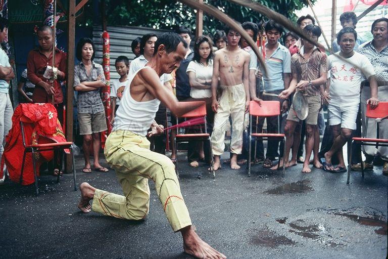 GEYLANG LORONG 7 TEMPLE PROCESSION -- THE WHIP MASTER CRACKING HIS WHIP