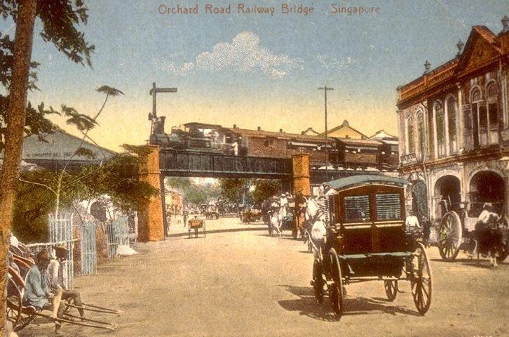 THE ORCHARD ROAD RAILWAY BRIDGE NEAR EMERALD HILL. FROM 1903 UNTIL1932, TRAINS RAN FROM THE TANK ROAD RAILWAY STATION ACROSS THIS BRIDGE TO THE WOODLANDS JETTY