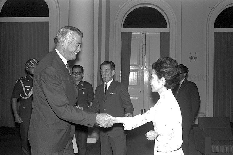 GOVERNOR OF NEW SOUTH WALES SIR RODEN CUTLER CALLS ON PRESIDENT DR BENJAMIN HENRY SHEARES AT ISTANA