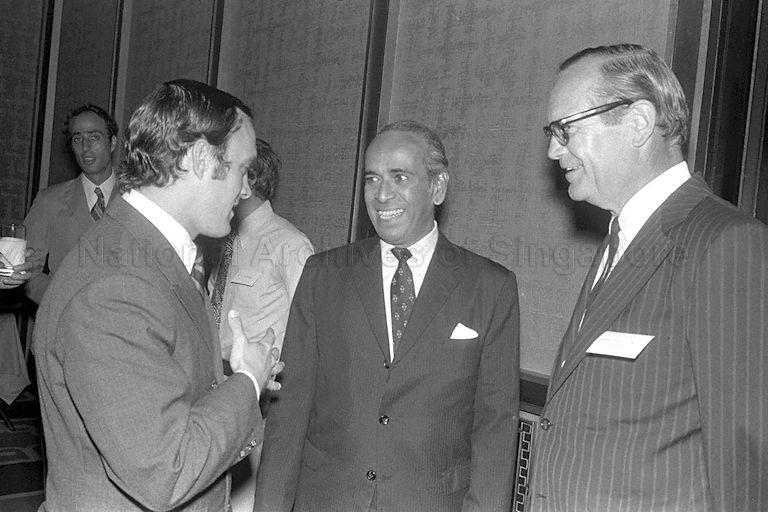 THE MINISTER FOR FOREIGN AFFAIRS S RAJARATNAM TALKING TO THE OFFICIALS AT THE SHANGRI-LA HOTEL WHEN HE IS TO ADDRESS THE AMERICAN BUSINESS COMMUNITY