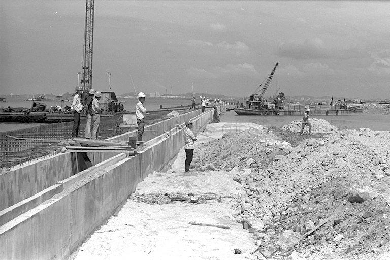 VIEW OF WEST COAST PASIR PANJANG RECLAMATION SCHEME SITE TAKEN DURING MINISTER FOR COMMUNICATIONS YONG NYUK LIN'S INSPECTION BEFORE OPENING OF PORT OF SINGAPORE AUTHORITY (PSA)'S $24 MILLION 5-STOREY ENGINEERING SERVICES DIVISION BUILDING