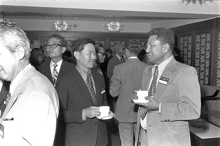 CHAIRMAN OF ASIAN PRODUCTIVITY ORGANISATION (APO) DR AUGUSTINE H H TAN WITH DELEGATES AT THE RECEPTION HELD DURING INAUGURATION OF 16TH SESSION OF APO GOVERNNING BODY AT RED GARDENIA ROOM, SHANGRI-LA HOTEL