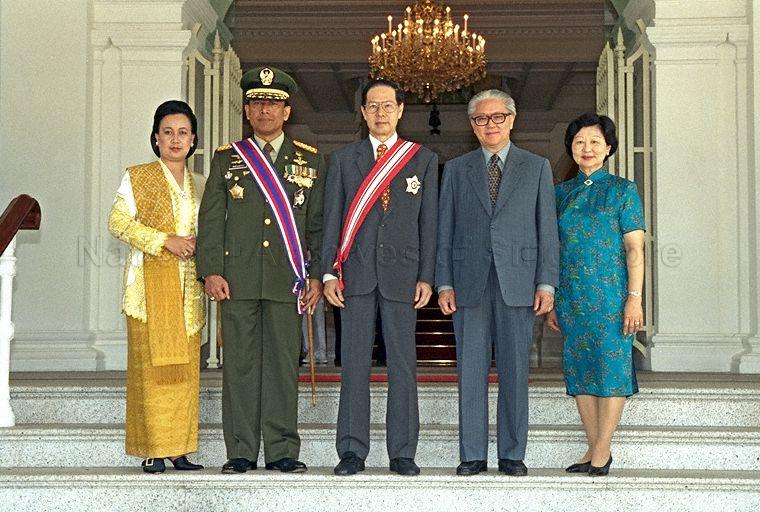 GROUP PHOTOGRAPH OF PRESIDENT ONG TENG CHEONG (CENTRE) WITH DEPUTY PRIME MINISTER AND DEFENCE MINISTER DR TONY TAN KENG YAM AND MRS MARY TAN AND INDONESIAN DEFENCE AND SECURITY MINISTER AND COMMANDER-IN-CHIEF OF THE INDONESIAN NATIONAL DEFENCE FORCES GENERAL WIRANTO AND MRS WIRANTO AFTER THE CONFERMENT OF THE DISTINGUISHED SERVICE ORDER (MILITARY) AWARD CEREMONY AT THE ISTANA