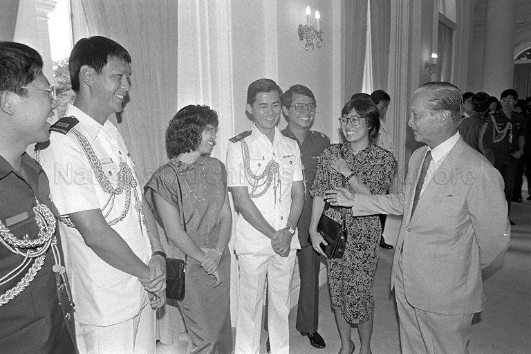 President Wee Kim Wee at tea reception after appointment ceremony of honorary aides-de-camp at Istana