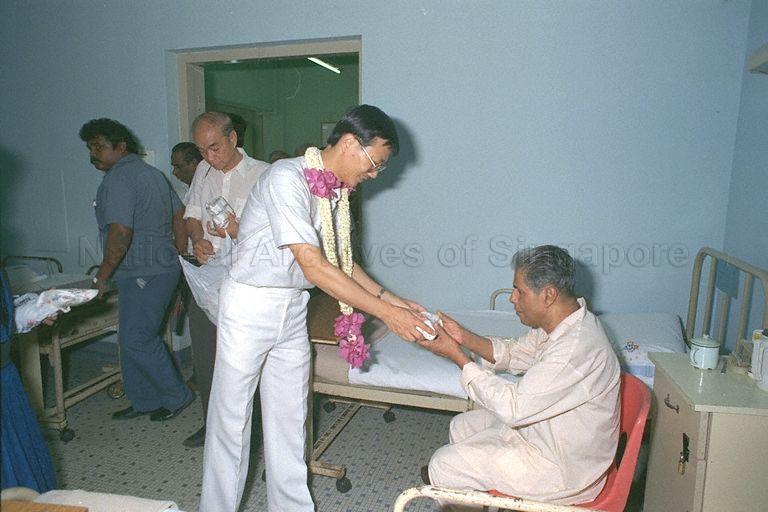 MINISTER OF STATE (NATIONAL DEVELOPMANT & HOME AFFARIS), DR LEE BOON YANG'S WALKABOUT IN BUKIT PANJANG AND SEMBAWANG CONSTITUENCIES PICTURE SHOWS THE MINISTER VISITING THE HOME FOR THE AGED