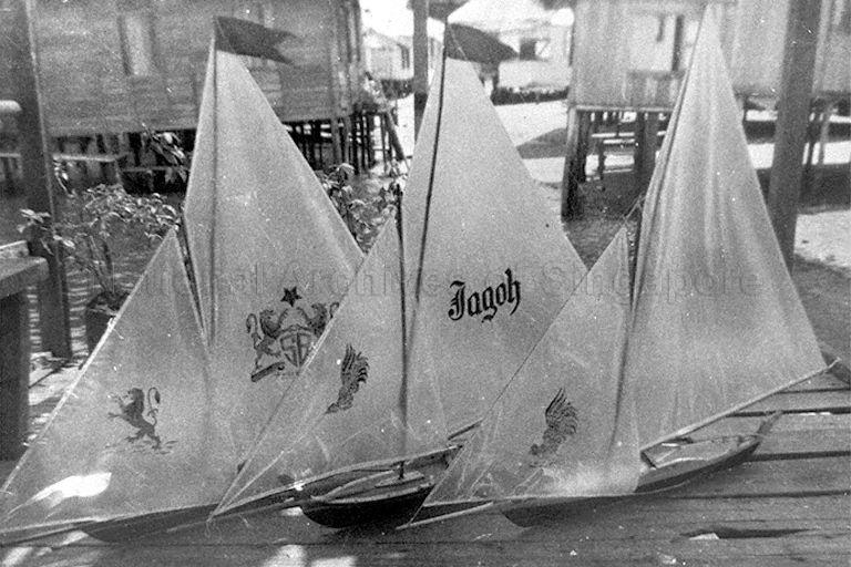 Scale-down model of Kolek (small sailing boat) displayed at the river during sea festival