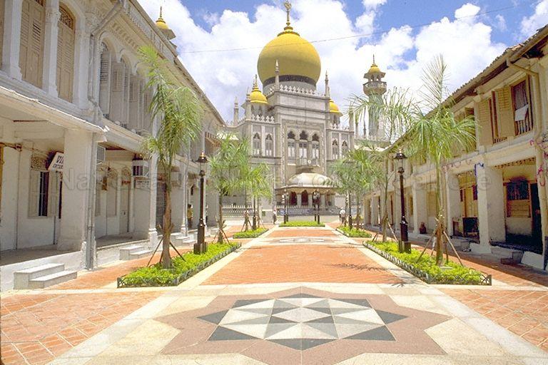 BUSSORAH STREET WITH SULTAN MOSQUE IN THE BACKGROUND DURING HARI RAYA CELEBRATIONS