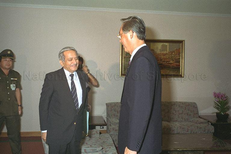 THE PAKISTAN MINISTER FOR DEFENCE AFTAB SHAHBAN MIRANI CALLS PRIME MINISTER GOH CHOK TONG AT THE ISTANA