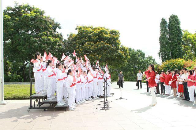 PRESIDENT NATHAN, PRIME MINISTER LEE HSIEN LOONG AND SENIOR MINISTER GOH CHOK TONG AT NATIONAL DAY OBSERVANCE CEREMONY AT THE ISTANA