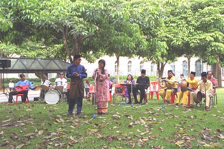 MALAY COUPLE SINGING MALAY FOLK SONG DURING THE NATIONAL HEALTHY LIFESTYLE CAMPAIGN 95 AND FLAG-OFF NATIONAL HERITAGE TRAIL