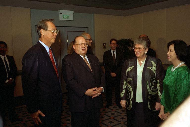 PRIME MINISTER GOH CHOK TONG AND HIS WIFE WITH THE PRIME MINISTER OF BELGIUM JEAN-LUC DEHAENE AND HIS WIFE CELIA DEHAENE AT THE DINNER HOSTED BY THE FORMER AT THE COMPASS ROSE, WESTIN STAMFORD HOTEL