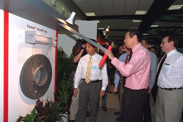 DEPUTY PRIME MINISTER AND MINISTER FOR FINANCE BRIGADIER-GENERAL (NS) LEE HSIEN LOONG VIEWS EXHIBITS AT EXXONMOBIL'S SINGAPORE CHEMICAL PLANT AT 100 JURONG ISLAND HIGHWAY DURING ITS DEDICATION