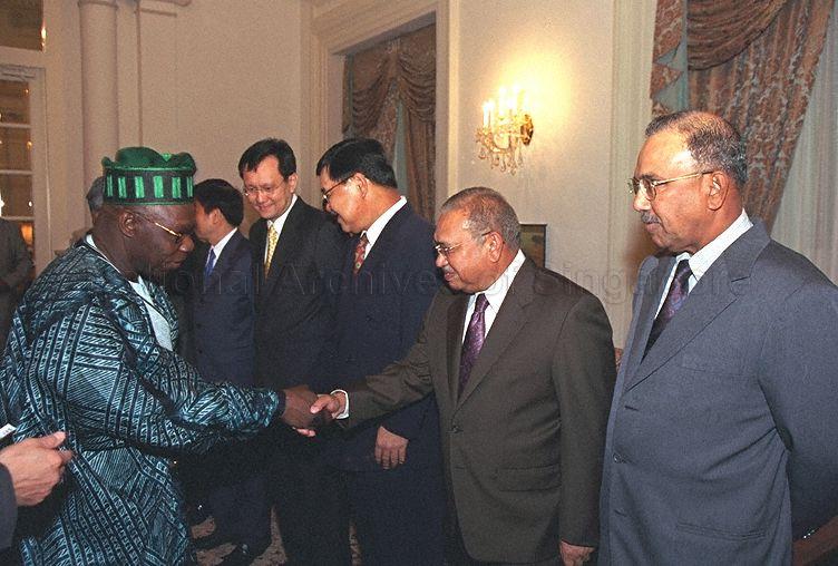 PRESIDENT HOST TEA RECEPTION FOR VISITING HEADS OF GOVERNMENT ATTENDING NON ALIGNED MOVEMENT IN KUALA LUMPUR AT ISTANA