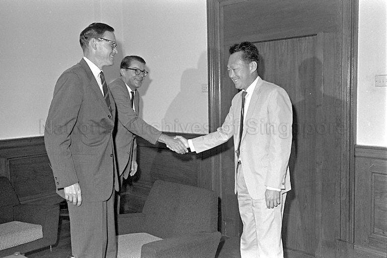 UNITED STATES SECRETARY OF STATE FOR FAR EASTERN AFFAIRS WILLIAM P BUNDY (LEFT) AND DELEGATION MEMBER CALL ON PRIME MINISTER LEE KUAN YEW