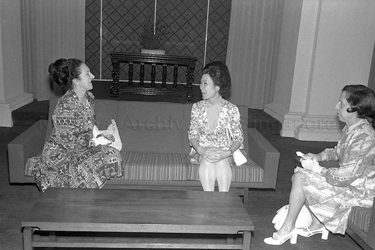 MRS PIERRE MESSMER, WIFE OF FRENCH PRIME MINISTER, CALLS ON MRS BENJAMIN HENRY SHEARES, WIFE OF PRESIDENT, AT ISTANA