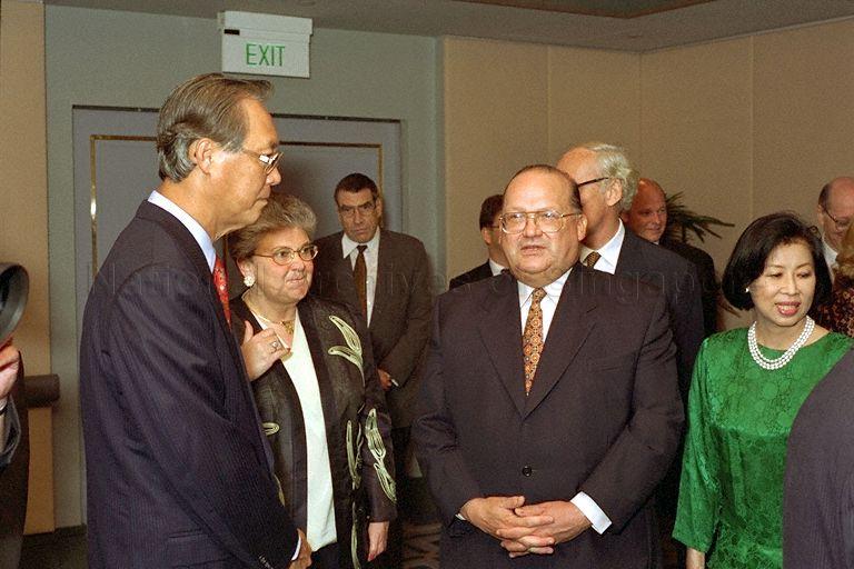 THE PRIME MINISTER OF BELGIUM JEAN-LUC DEHAENE AND HIS WIFE CELIA DEHAENE ATTEND DINNER HOSTED BY PRIME MINISTER GOH CHOK TONG AND HIS WIFE AT THE COMPASS ROSE, WESTIN STAMFORD HOTEL