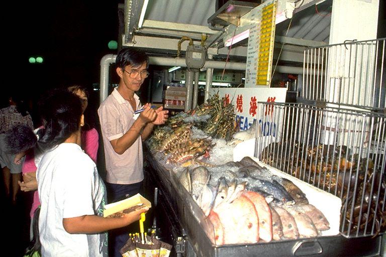 A SEAFOOD STALL AT NEWTON CIRCUS HAWKER CENTRE