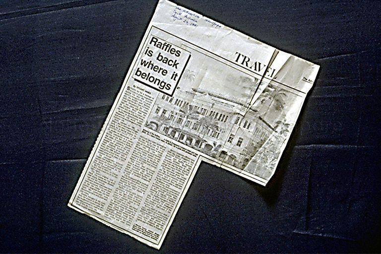 NEWSPAPER CLIPPING ON THE RAFFLES HOTEL FROM THE NEWSPAPER ADVERTISER FROM SOUTH AUSTRALIA