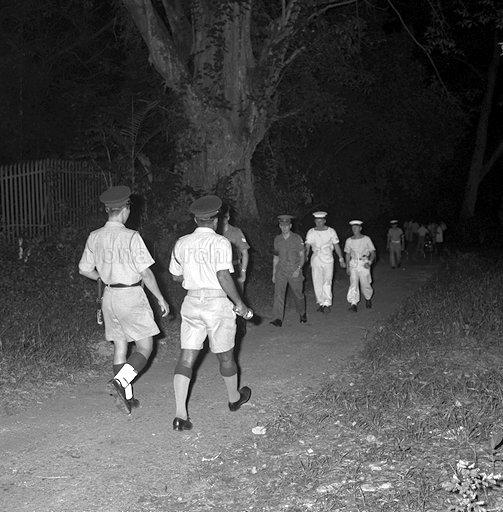 ARMY BOMB DISPOSAL EXPERTS COMBING THE AREA TO FIND ANY FRAGMENTS OF THE BOMB WHICH EXPLODED OUTSIDE THE PERIMETER FENCE OF THE ISTANA NEGARA AT THE WILKIE ROAD AND MACKENZIE ROAD