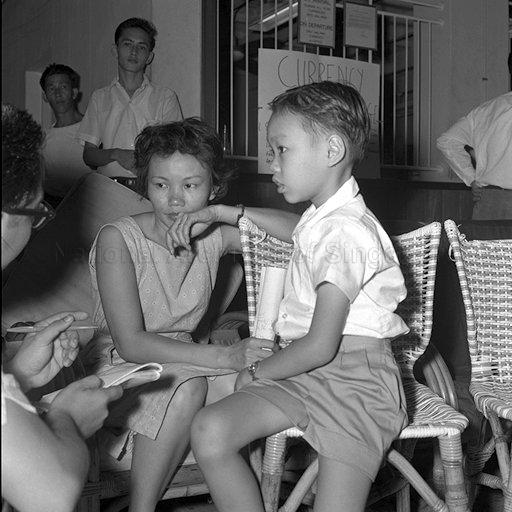 WIVES AND CHILDREN OF BRITISH EMBASSY OFFICIALS AND BUSINESS EXECUTIVES BOARDING AN RAF VAN TO CHANGI AFTER THEIR ARRIVAL AT PAYA LEBAR BY A CHARTERED PAN-AMERICAN JET FROM JAKARTA AWAY FROM ANTI-MALAYSIA DEMONSTRATORS