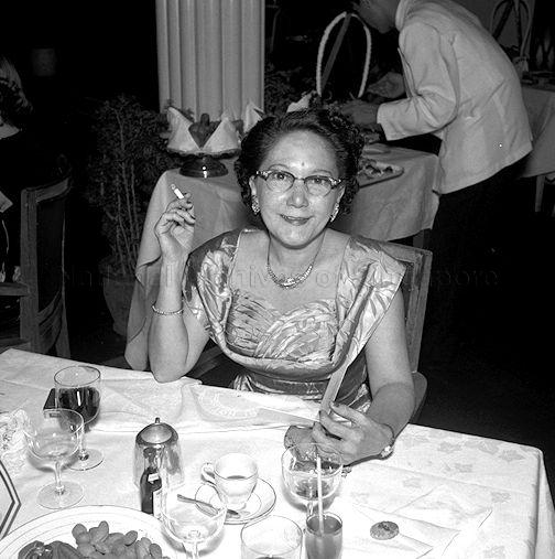MISS ROSALIND MATHEWS, A SECRETARY IN A COLONY HOTEL, RELAXING AFTER SUPPER AT A POPULAR NIGHTSPOT