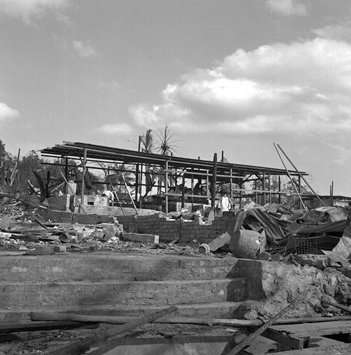 HUTS BEING BUILT AT SITE OF KAMPONG TIONG BAHRU FIRE (1959)