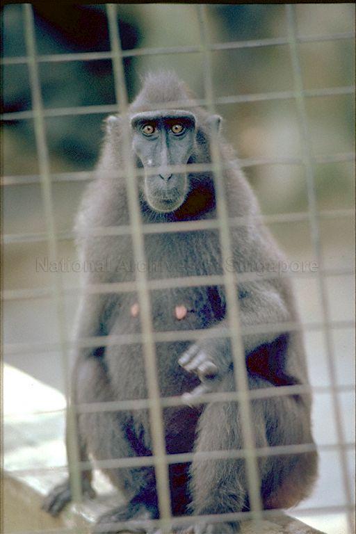 THE CELEBES APE OR THE CRESTED MACAQUE AT THE SINGAPORE ZOOLOGICAL GARDENS