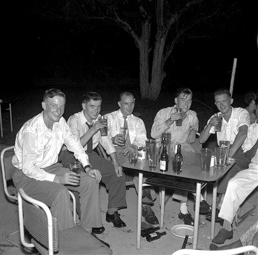 FIVE CHEERFUL BUT LONELY LADS, PRIVATES GINGER LEWIS, JOCK HARDINGHAM, ALFIE JOHNSON, STEWARD MEDLEY AND SCOUSE HYLAND AT THE DANCE