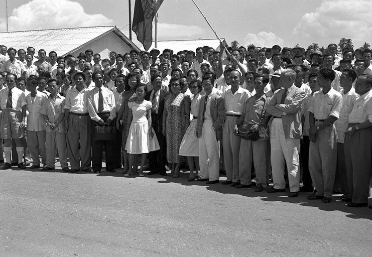 MERDEKA TALKS - LABOUR FRONT SUPPORTERS AT SINGAPORE PAYA LEBAR AIRPORT TO WELCOME THE DELEGATION'S RETURN FROM LONDON