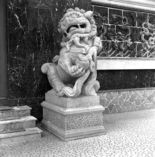 STONE LION STATUE AT ENTRANCE OF THE CHINESE CHAMBER OF COMMERCE NEW BUILDING AT HILL STREET