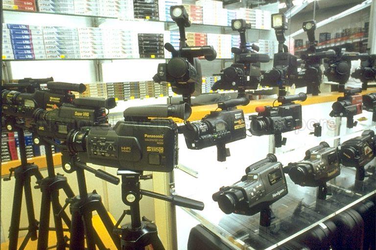 A DISPLAY OF VIDEO CAMERAS AND ACCESSORIES (EARLY 1990S)
