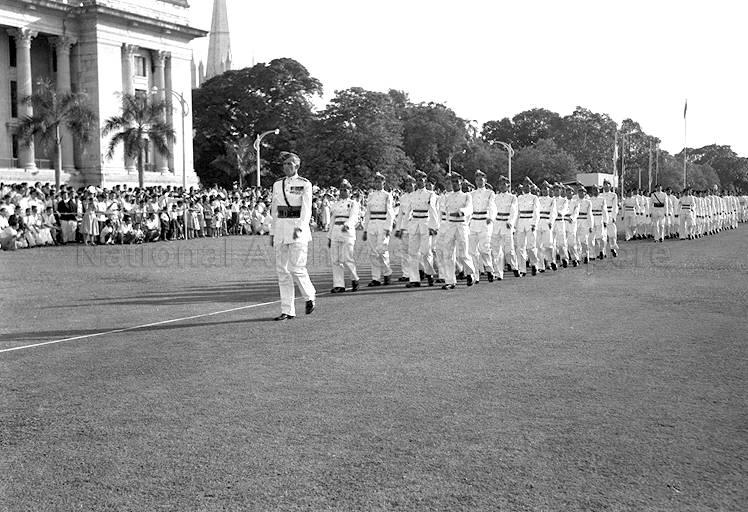 CONTINGENT OF 1ST BATTALION, SINGAPORE INFANTRY REGIMENT, AT PARADE IN PADANG ON THE OCCASION OF THE QUEEN'S BIRTHDAY
