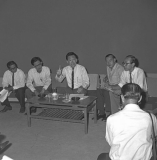 PRIME MINISTER LEE KUAN YEW, HIS EYES BRIMMING WITH TEARS WHEN HE ANNOUNCED THE SEPARATION OF SINGAPORE FROM MALAYSIA AT A PRESS CONFERENCE