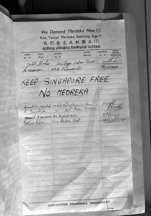 MERDEKA SLOGAN IN REFERENDUM BOOK AT ASSEMBLY HOUSE, SINGAPORE