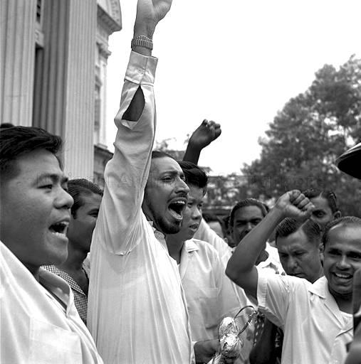 (X) JAMIT SINGH (2L), GENERAL SECRETARY OF THE SINGAPORE HARBOUR BOARD STAFF ASSOCIATION FACES A CHARGE IN THE FIRST CRIMINAL DISTRICT COURT FOR MISUSE OF UNION FUNDS. A CROWD OF ONLOOKERS AND SUPPORTERS GATHERED OUTSIDE THE COURT HOUSE.