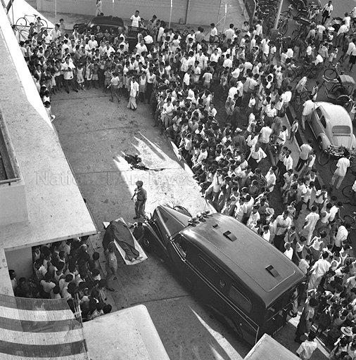 A CROWD AT "SUICIDE FLATS" IN UPPER PICKERING STREET WATCHING THE POLICE REMOVING BODY OF NG YONG KIM, A BANK CLERK