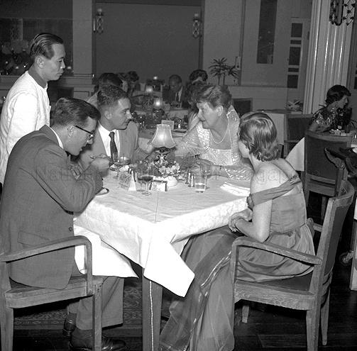 ROUND ABOUT TOWN - MR SANDY KAHN AND HIS WIFE KITTY CELEBRATING THEIR FOURTH WEDDING ANNIVERSARY WITH CLOSE FRIENDS MR AND MRS G W MASSEY AT A NIGHTSPOT
