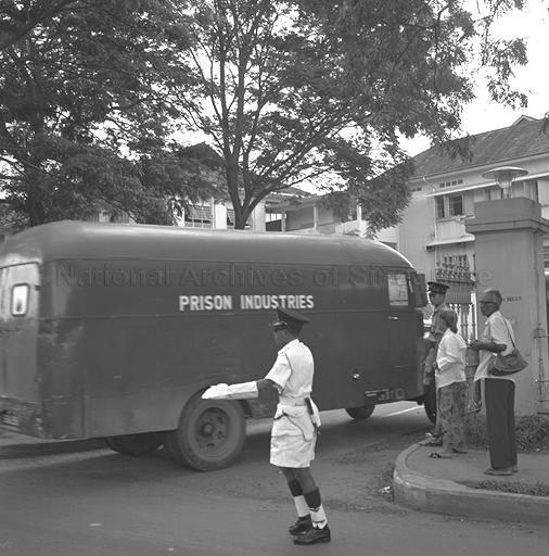 PULAU SENANG RIOT - BLACK MARIA WITH BODIES OF THE HANGED DETAINEES ARRIVING AT MORTUARY OF SINGAPORE GENERAL HOSPITAL