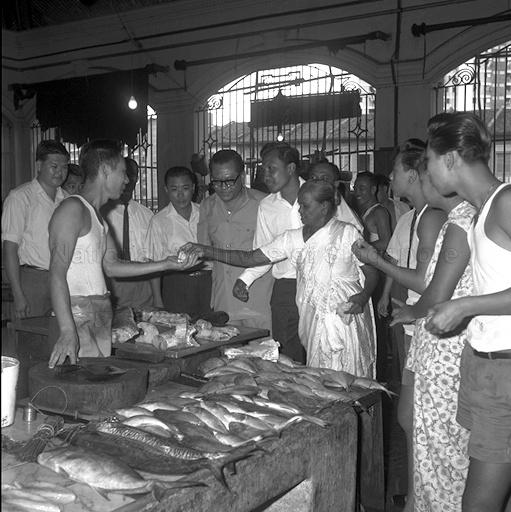 RACIAL TENSION 1964 - MALAYSIA MINISTER FOR AGRICULTURE AND CO-OPERATIVES MOHAMED KHIR JOHARI AT KANDANG KERBAU MARKET
